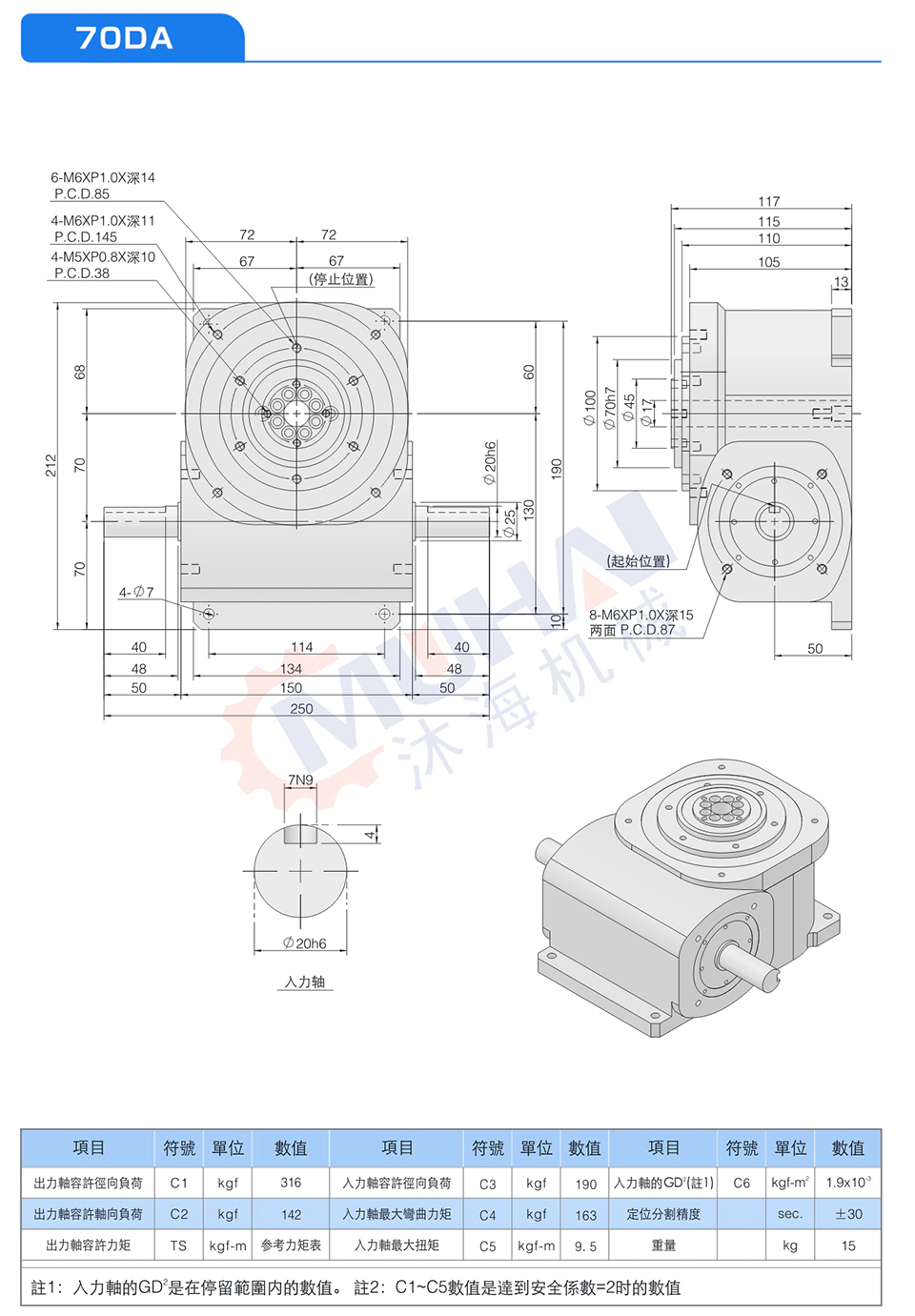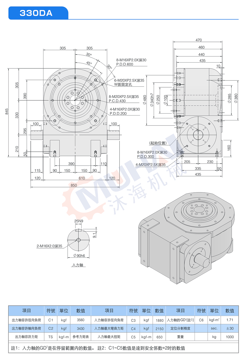 此系列機種之尺寸設計特性與平臺桌面型功能相似,于驅動運轉上可承受超大軸向負載及垂直徑向壓力,在輸出端有一凸起固定盤面及大孔徑空心軸,可搭配設置動態、靜態自動化周邊設備,可將動力源之電、油、氣管路設置于空心孔內,此系列機種廣泛用于重負載、直結自動化設備之各類種機構及產業機械等,作同步自動化間歇驅動。